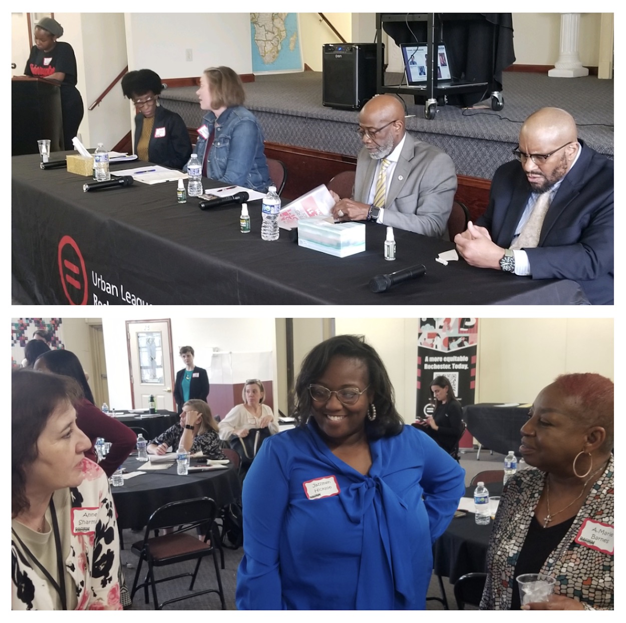During the conference, a panel of DE&I experts (top photo) led discussions involving cultural humility, a DE&I legal lens perspective, and success stories of advancing DE&I within organizations.