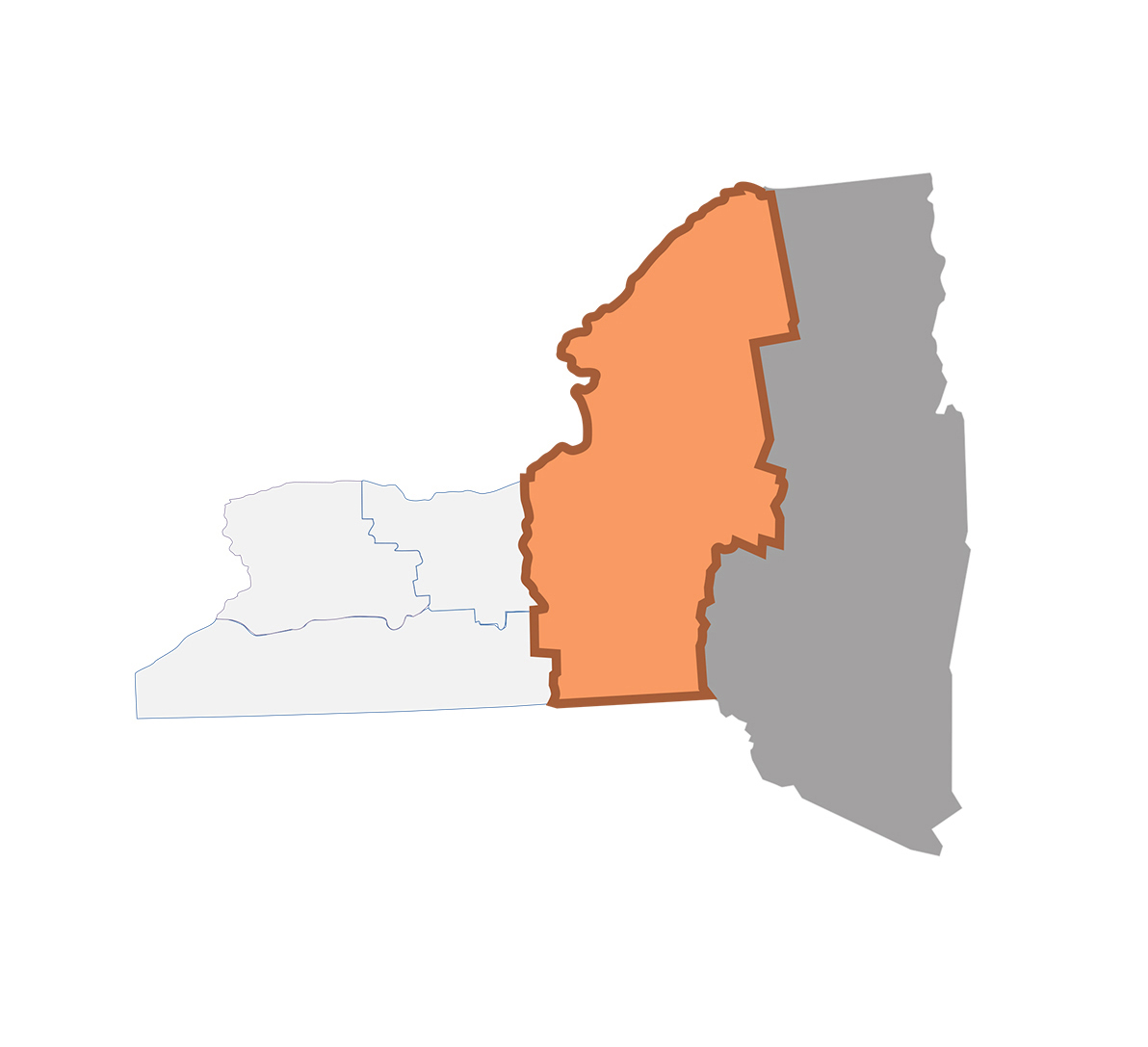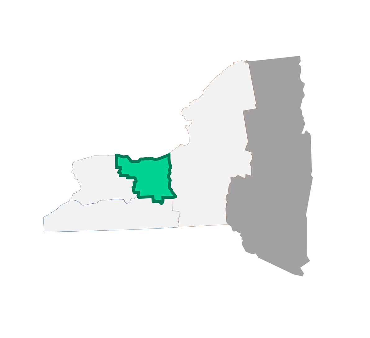 Central Region: Broome, Cayuga, Chenango, Cortland, Herkimer, Jefferson, Lewis, Madison, Oneida, Onondaga, Oswego, St. Lawrence, Tioga and Tompkins counties